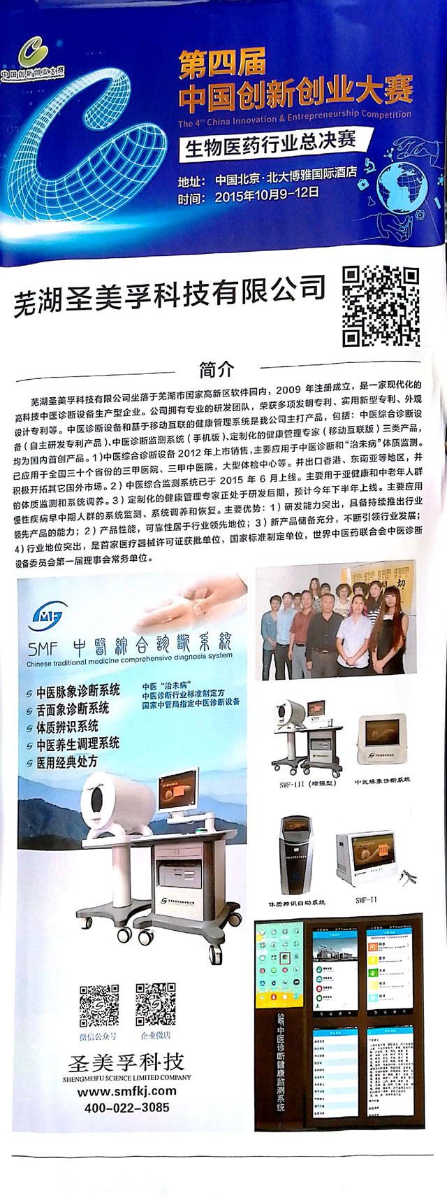 2015年,“中醫(yī)脈象診斷系統(tǒng)”、“SMF中醫(yī)舌面象儀”兩項產(chǎn)品入選全國衛(wèi)生產(chǎn)業(yè)管理協(xié)會首批“治未病服務適宜設備”;