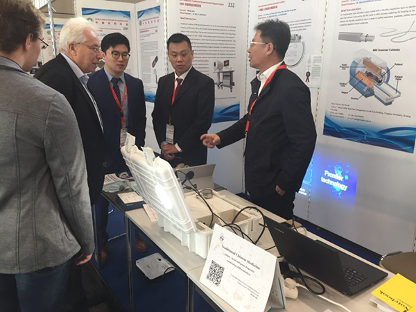 蕪湖圣美孚科技有限公司申報(bào)項(xiàng)目在順利通過(guò)國(guó)內(nèi)多重審查遴選后,成為中國(guó)中醫(yī)診療設(shè)備企業(yè)代表,作為中國(guó)代表團(tuán)成員參加了本次發(fā)明展。同時(shí)受邀參展的中國(guó)代表團(tuán)項(xiàng)目成員還有清華大學(xué)、北京交通大學(xué)、北京宇航系統(tǒng)工程研究所、中國(guó)航天科技集團(tuán)、國(guó)家電網(wǎng)公司等。11月2日展會(huì)開(kāi)幕,中國(guó)駐德國(guó)大使館特派科技一秘李國(guó)強(qiáng)教授前來(lái)展會(huì)參觀中國(guó)代表團(tuán)并鼓勵(lì)。
