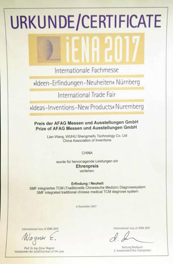 此次獲獎(jiǎng)是公司繼榮獲科技部創(chuàng)新基金、國(guó)家高新技術(shù)企業(yè)、中醫(yī)診斷行業(yè)標(biāo)準(zhǔn)制定方、驗(yàn)證方、首批入選“治未病服務(wù)適宜設(shè)備”、CE認(rèn)證等多項(xiàng)榮譽(yù)之后取得的國(guó)際性發(fā)明大獎(jiǎng),是我公司科研實(shí)力、綜合實(shí)力不斷提升的重要標(biāo)志。